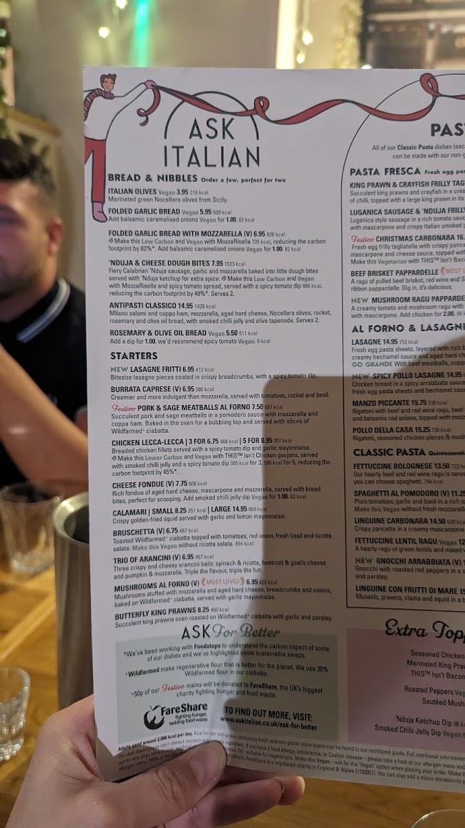 The seasonal menus, including festive offerings, boast great value, with highlights like the warm chocolate brownie, praised for its decadence. Each visit promises a gratifying experience, whether you're celebrating a special occasion or simply enjoying a meal with friends. Let ASK Italian be your go-to destination for excellent food and warm, friendly service.
